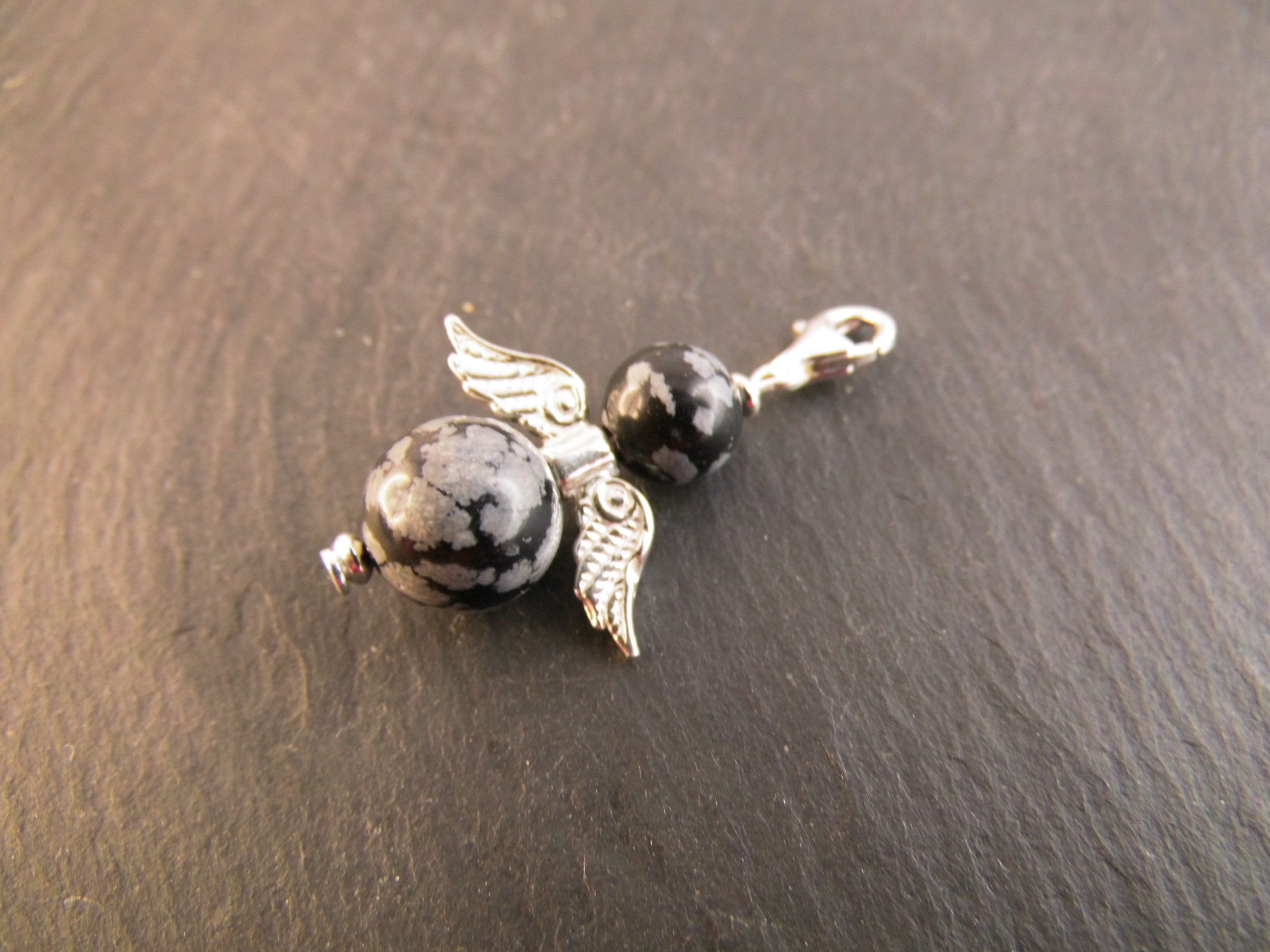 925er Echt Silber Schneeflocken Obsidian Anhänger Perlenengel Schutzengel KettenanhängerHerstellung ca. 5 - 10 Tage
