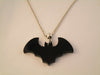 925er Echt Silber Kette mit Fledermaus Anhänger schwarz Acryl