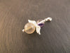 Der Engel hatte eine Gesamtlänge von 3,6 cm und eine Breite der Flügel von 2,2 cm. Die Perlen sind aus reinen Fluorit. Die Schmuckelemente bestehen alle aus 925er Silber.